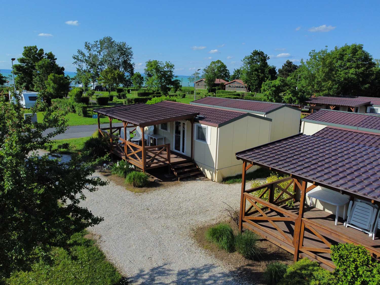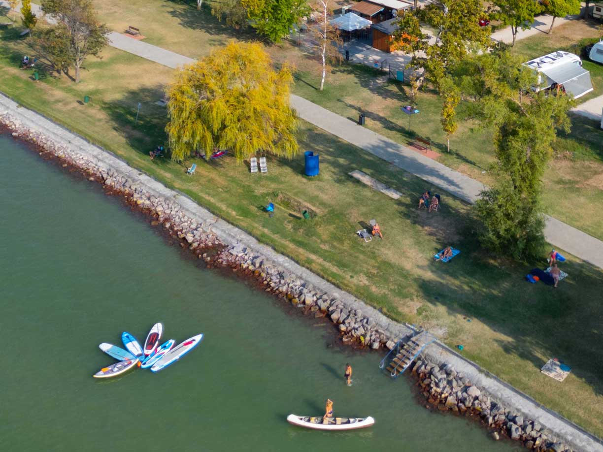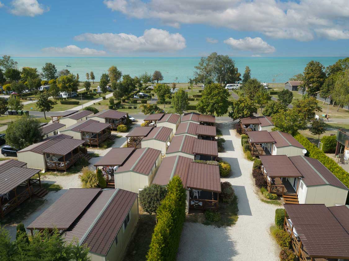 A Kemping területe összesen 7 hektár: fűthető vizű medencével, sportpályával, kerékpárkölcsönzési lehetőséggel. Bográcsozni, tüzet rakni a kijelölt helyeken szabad. A szabadstrand a kemping mellett van közvetlenül: így csak egy törölközőre van szükség és néhány méterre ott is van a Balaton. 2023. június 16. – augusztus 31. között nem tud a szállásadó csoportokat fogadni!
