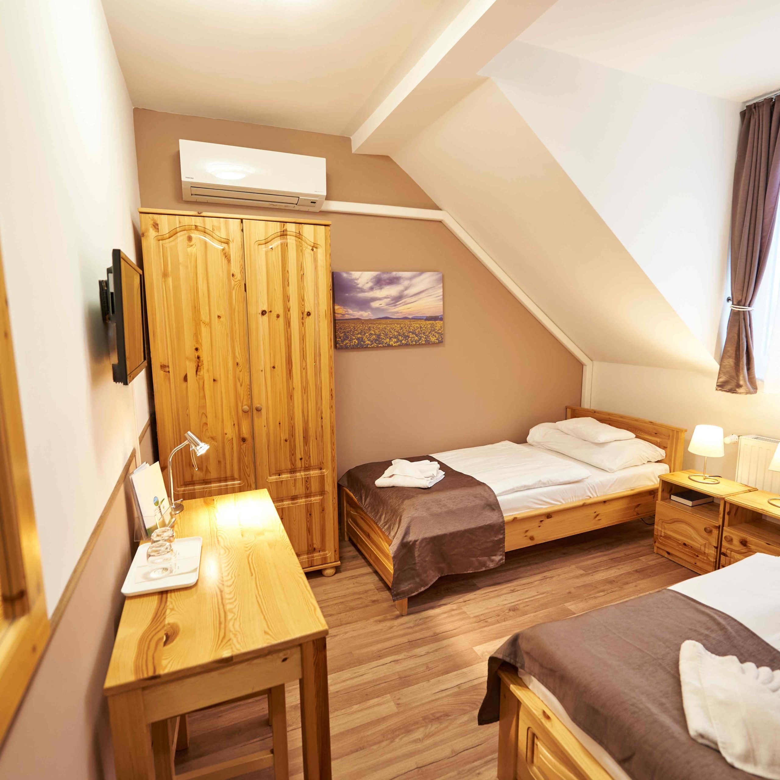 Hotelünkben 58 kétágyas, illetve franciaágyas szoba található. Minden szoba saját fürdőszobával, WC-vel rendelkezik. A szobák standard felszereltsége: légkondicionáló, TV, mini hűtő, hajszárító, törülköző szett, tusfürdő.