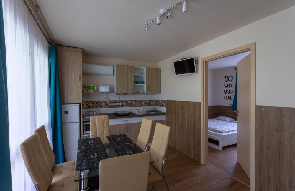 - Apartmanok+mobilház+apartmanház felszereltsége magas, fürdőszoba, WC, konyha, terasz, légkondicionált (fizetős)