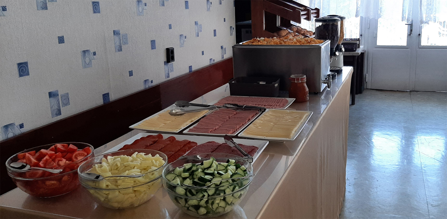 Saját konyha üzemel a szálláson speciális étkezésekkel (laktózmentes, vegetáriánus felár nélkül, gluténmentes felár ellenében). Büfé 7-22h között